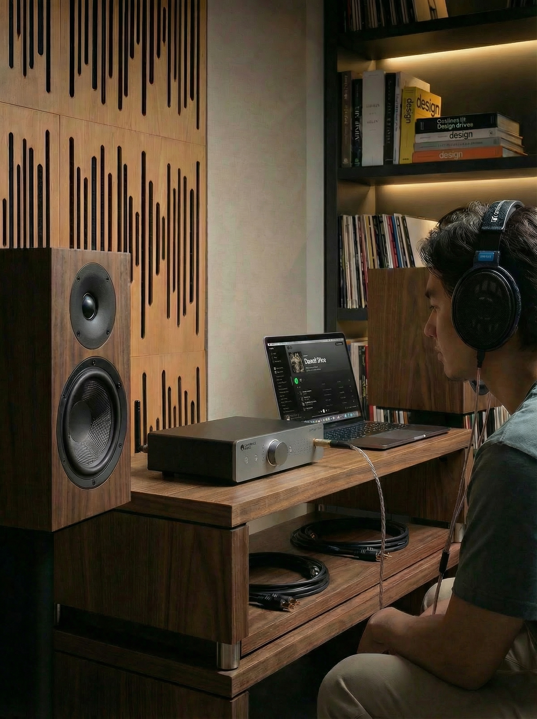 El Cambridge Audio DacMagic 200M destaca como un DAC de referencia en su categoría gracias a su arquitectura dual-mono con dos chips ESS Sabre ES9028Q2M, que proporciona una escena sonora amplia, precisa y con excelente separación de canales; a ello se suma la conectividad Bluetooth aptX Adaptive/HD de calidad audiófila, que permite streaming inalámbrico de alta resolución con baja latencia y mínima pérdida de detalle. Su compatibilidad total con audio Hi-Res —hasta PCM 32-bit/768 kHz, DSD512 y decodificación MQA— asegura reproducción fiel de prácticamente cualquier formato digital moderno, mientras que su amplificador de auriculares dedicado y salidas balanceadas XLR lo convierten en un centro digital completo capaz de alimentar tanto sistemas hi-fi como audífonos exigentes con autoridad y refinamiento.